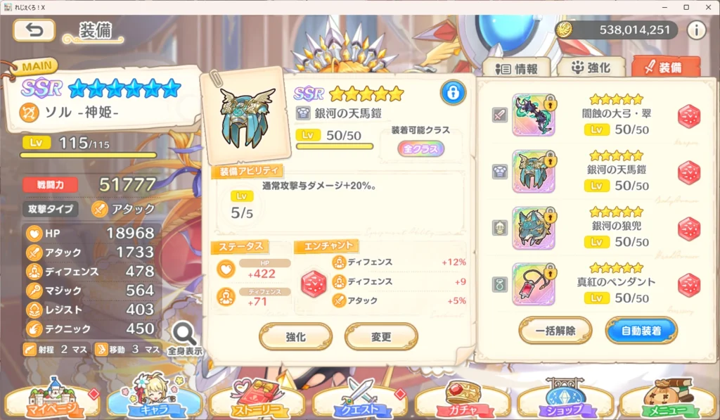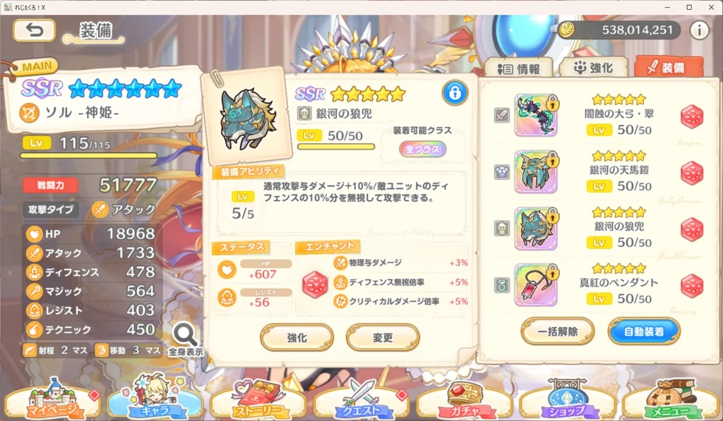 …てかこれ魔法ダメ-ジ耐性 +30% に騙されて物理キャラだけで突っ込んだらディフェンス超高い奴がいて騙された。よくもだましたアア(ry